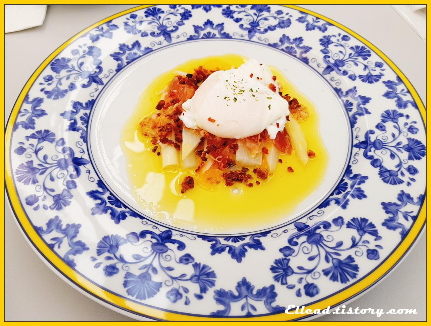 아스파라거스, 하몽, 수란이 재료다. 이 멋진 요리를 뭐라고 하는지 모르겠으나, 화이트 아스파라가스의 식감은 정말 인상적이었다.