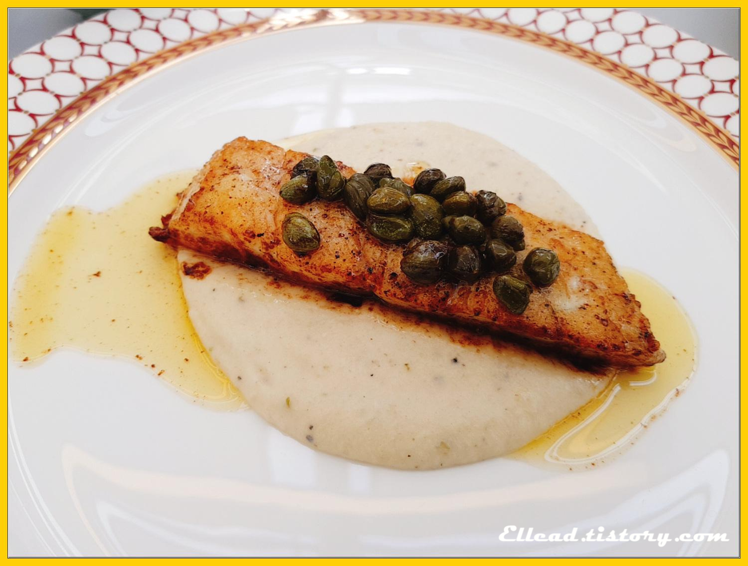 케이퍼로 가니쉬한 농어구이