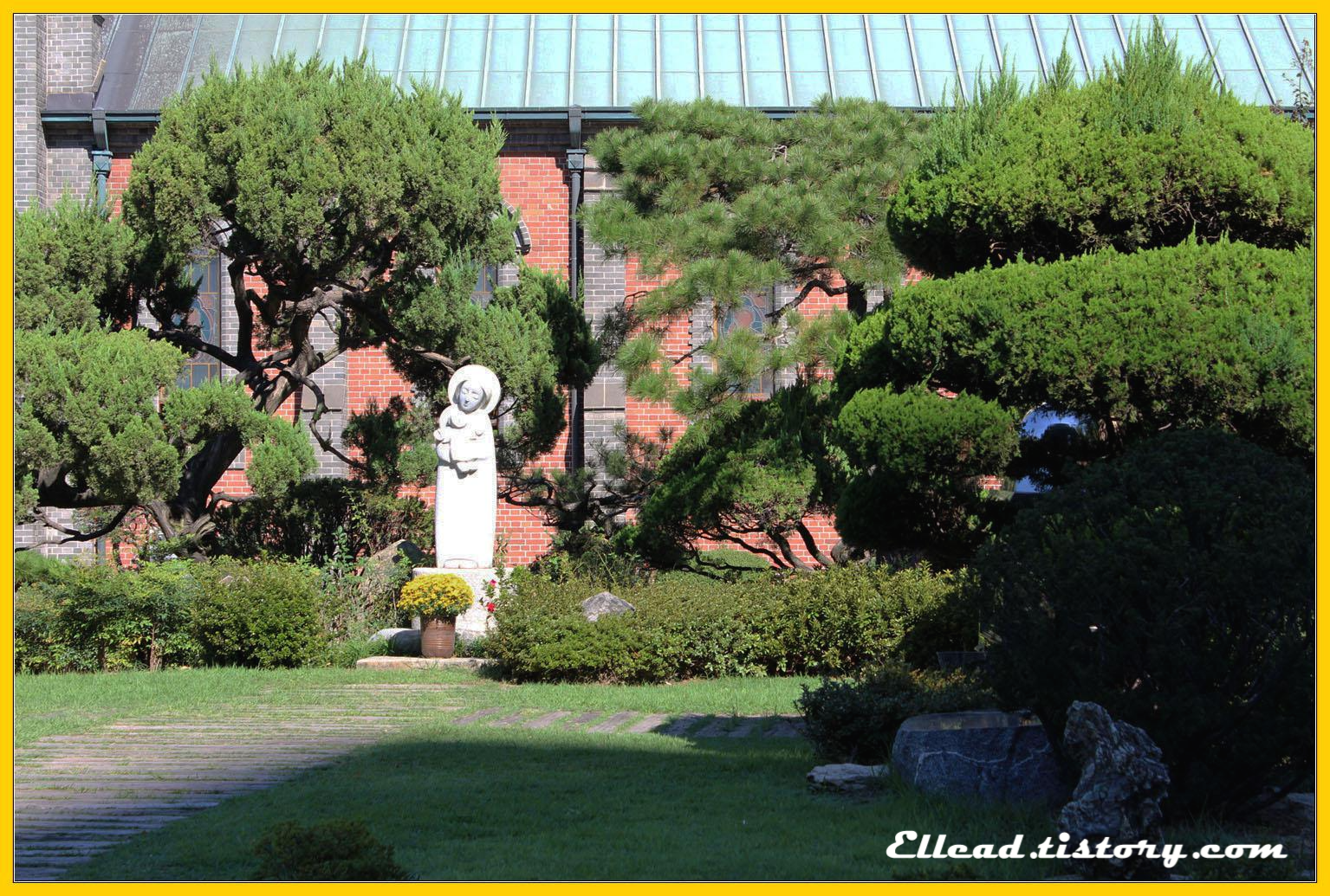이 성당의 실물을 보기 전에 나는 화가 이인성의 작품에서 먼저 이곳을 만났다. 개인적으로 많이 좋아하는 화가다. 그의 작품 <계산동 성당>에는 앙상한 나무도 하나 나오는데 실제 성당에 있는 감나무를 그린 것이라고 한다. 이제 수령이 백년이 넘어가는 이 나무는 지금도 성당 한켠을 지키고 있다. <이인성 나무>라는 멋진 별명과 함께 말이다. 계산동 성당은 대구 시내 큰 길가에 있다. 교통량도 많고, 혼잡스러운 상황이지만 이상하게도 성당 주위로는 차분함을 넘어 고요한 적막감까지도 느껴진다. 사람들의 마음을 어루만져주는, 영성이 깃든 종교적 건축물에서 흔히 발견되는 특징이다. 교회든 성당이든, 산사나 암자든 아무 상관없이 말이다.